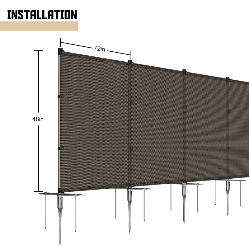 - Flexible spacing between posts. Please note that fabric and posts is not fixed together in the package which needs to be attached together by customers which means you are able to control the post spacing by your needs. A drill is required. The recommended post space is 6 feet.