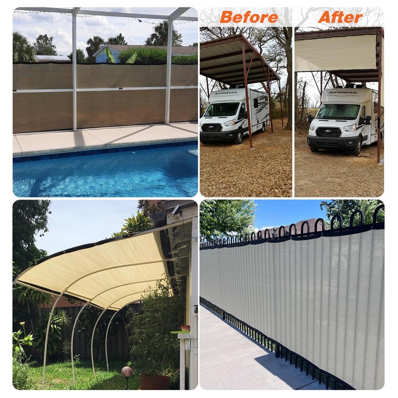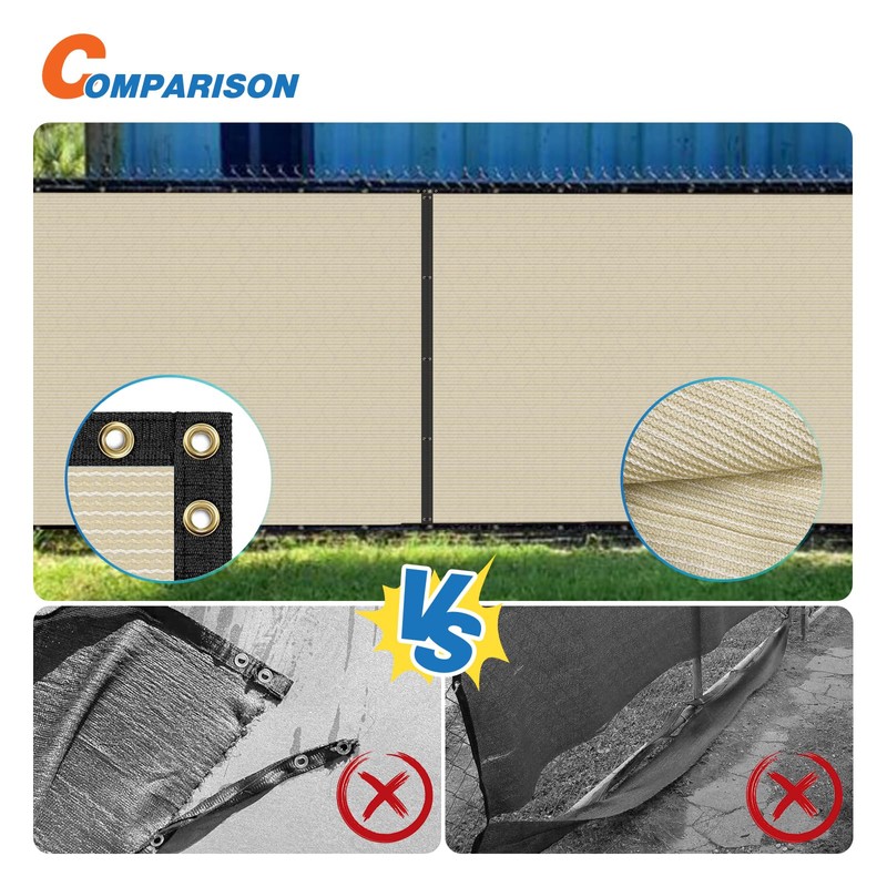 - 【EASY TO INSTALL】: After unfolding the privacy screen use zip ties to fasten the grommets to the fence on each side, no professionals and tools are needed to complete the installation. (Zipties included in the package)