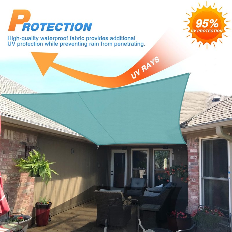 **Keep The Sun Away** Shade Sails are the most cost effective shade solution per square foot! Shade Sails protect and shade your outdoor areas. Also known as Sun Sails, shade sails make beautiful additions to your patio, backyard, or other outdoor areas, while providing excellent protection from the sun and its harmful UV radiation. A chic shade sail is the perfect alternative to a traditional pergola or covered porch. **High Quality Fabric** The sail itself is constructed from a high quality HDPE breathable shade fabric material which resists , stain, tear, crack and fade. Unlike cloth or canvas materials, the polyethylene weave does not absorb water or humidity. Heavy duty design, together with built in UV protection, ensures shade sails stand up to years of outdoor exposure. **Wonderfully Versatile** You can creatively design your own little shady area in a courtyard, pool, gardens, childrens' play areas, car spaces, and even entry ways. In addition, they can be supported by wood posts or steel columns embedded in concrete footings. They can easily be taken down seasonally if necessary. **Easy to Install and Maintain** Easy to clean with simple soap and water,fade resistant, will not stain, tear. Easy to install with detailed instruction.