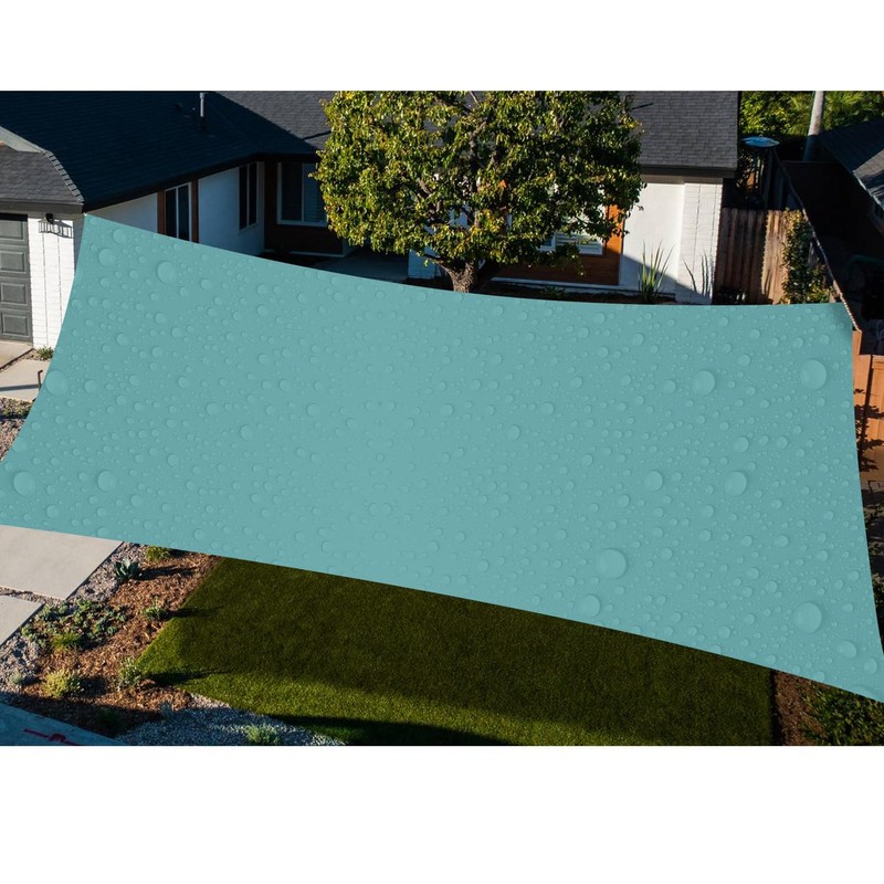 TANG 16'x16' Waterproof Sun Shade Sail Rectangle Outdoor Canopy UV Block Shade Cloth with Curved Edge for Patio Backyard Pool Pergola Cover, Turquoise