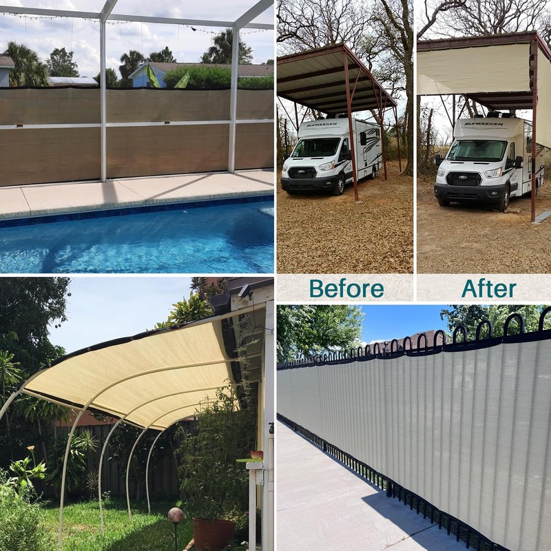 • 【EASY TO INSTALL】: After unfolding the privacy screen use zip ties to fasten the grommets to the fence on each side, no professionals and tools are needed to complete the installation. (Zipties included in the package)