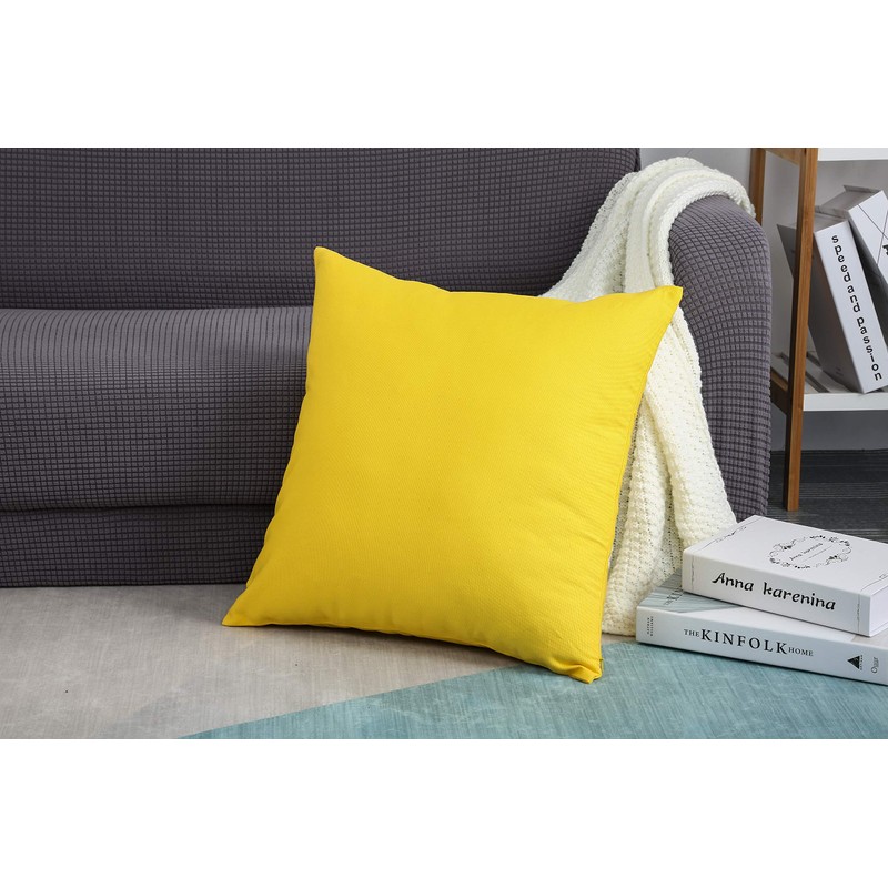 - Size, Color & Design: 14"x14", Yellow. Both the front and the back of the pillow cover have the same color. Choice of 12 Great Colors: Apple green, Brilliant rose, Dark Navy, Deep coffee, Khaki, Light blue, Light coffee, Red, Salmon pink, Watermelon Red, Wine and Yellow.