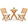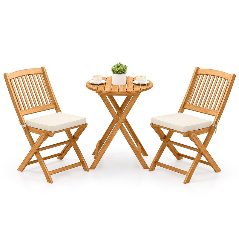 Tangkula 3 Pieces Acacia Wood Patio Folding Bistro Set, Outdoor Table and Chairs Set with Soft Cushions, Patio Furniture Set for Porch, Balcony, Garden, Deck and Backyard