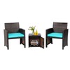 Tangkula 3 Pieces Outdoor Wicker Conversation Set with Waterproof Cover, 2 Patio Rattan Cushioned Chairs with Side Storage Table, Suitable for Front Porch, Balcony, Garden, Poolside (Turquoise)