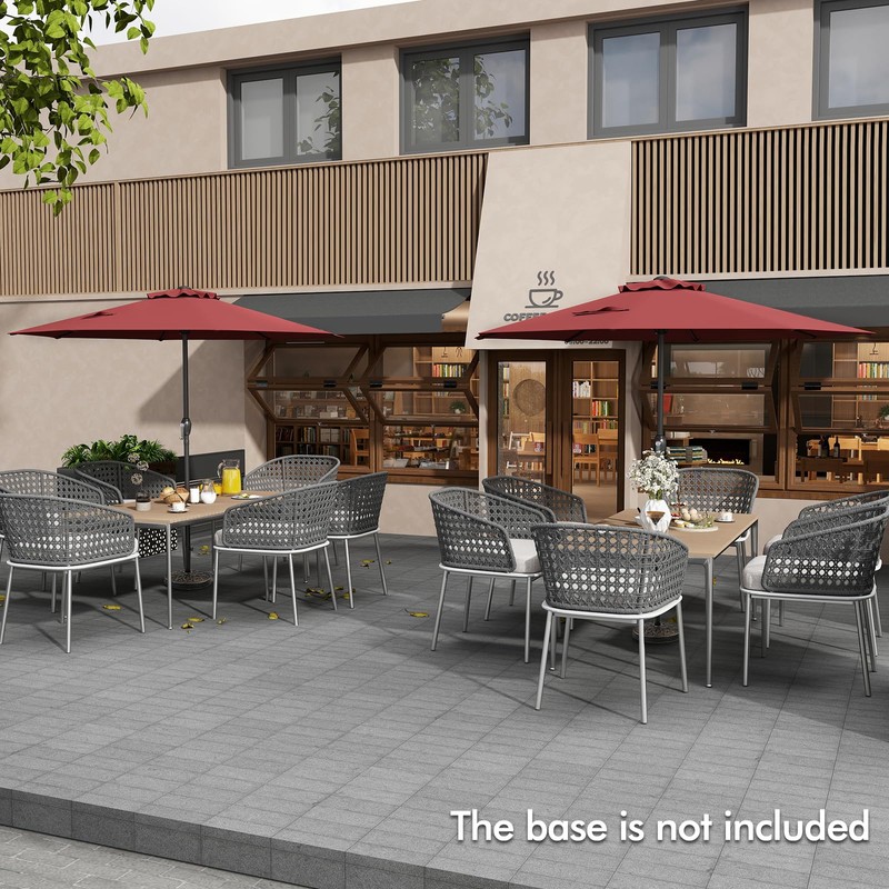 - Wide Application & Dimensions: This outdoor umbrella is versatile enough for both residential and commercial settings, including gardens, poolsides, restaurants, and backyards. An umbrella base (over 33 lbs) is recommended for added stability (not included). Overall Dimension: 8.5 ft x 8.5 ft x 7.4 ft (L x W x H).