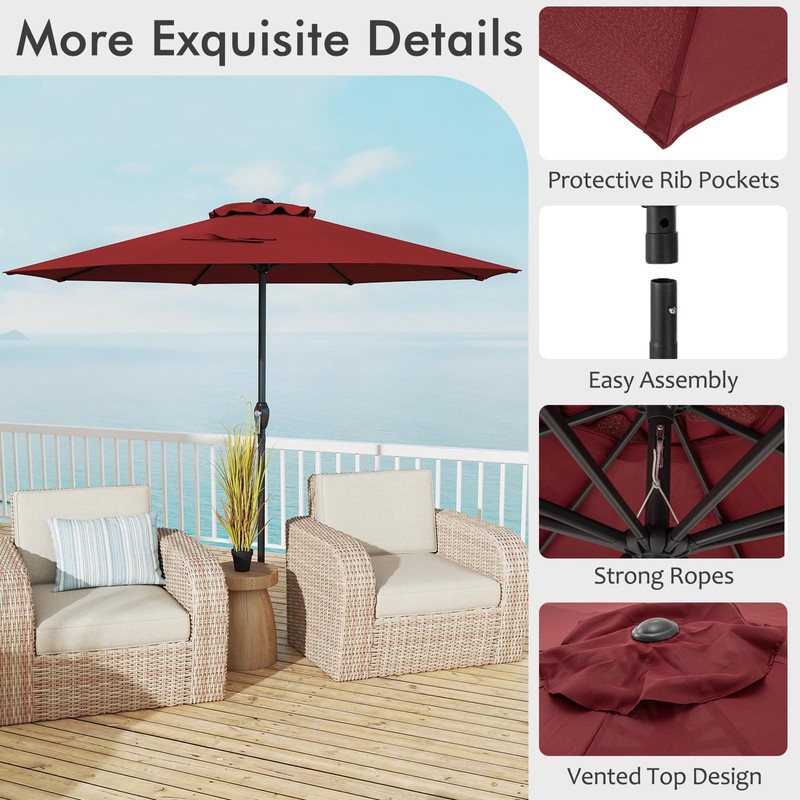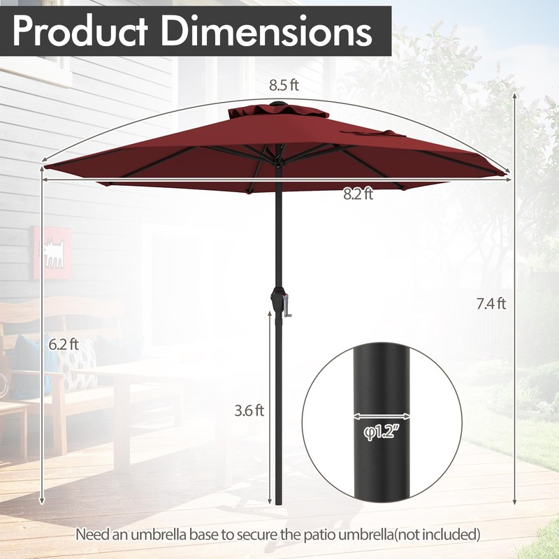 Tangkula 8.5 FT Outdoor Patio Umbrella, Modern Table Umbrella with 8 Heavy Duty Ribs, Vented Top & Crank Handle, Sun-proof Canopy, Market Umbrella for Patio, Garden, Poolside (Wine)