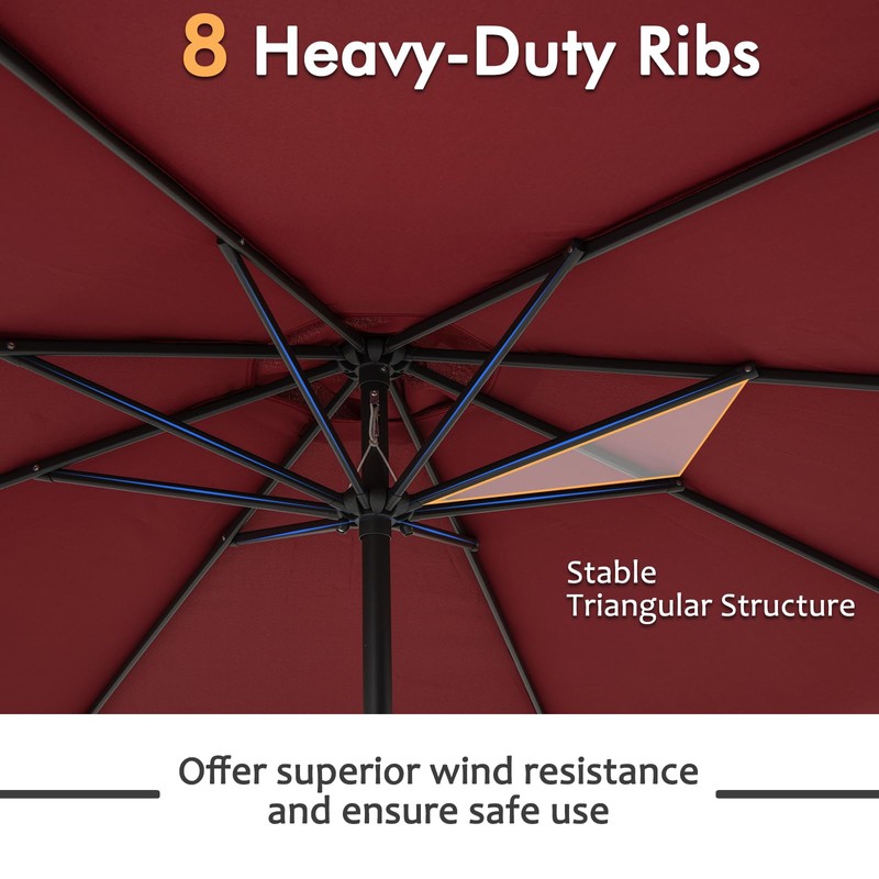 - Sturdy & Stable Frame: Constructed with a sturdy powder-coated metal pole, this patio umbrella provides exceptional support and minimizes sway, even in windy conditions. The 8 heavy-duty ribs reinforce the structure, offering superior wind resistance and ensuring the safety and stability of your umbrella during use.