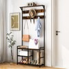 - 【3-In-1 Multifunctional Coat Rack】Combining clothes hanger, storage rack and shoe bench together, our 3-in-1entryway coat rack is a perfect furniture for home use. With this coat rack stand, you can put your coats, shoes and hats on it for your convenience.