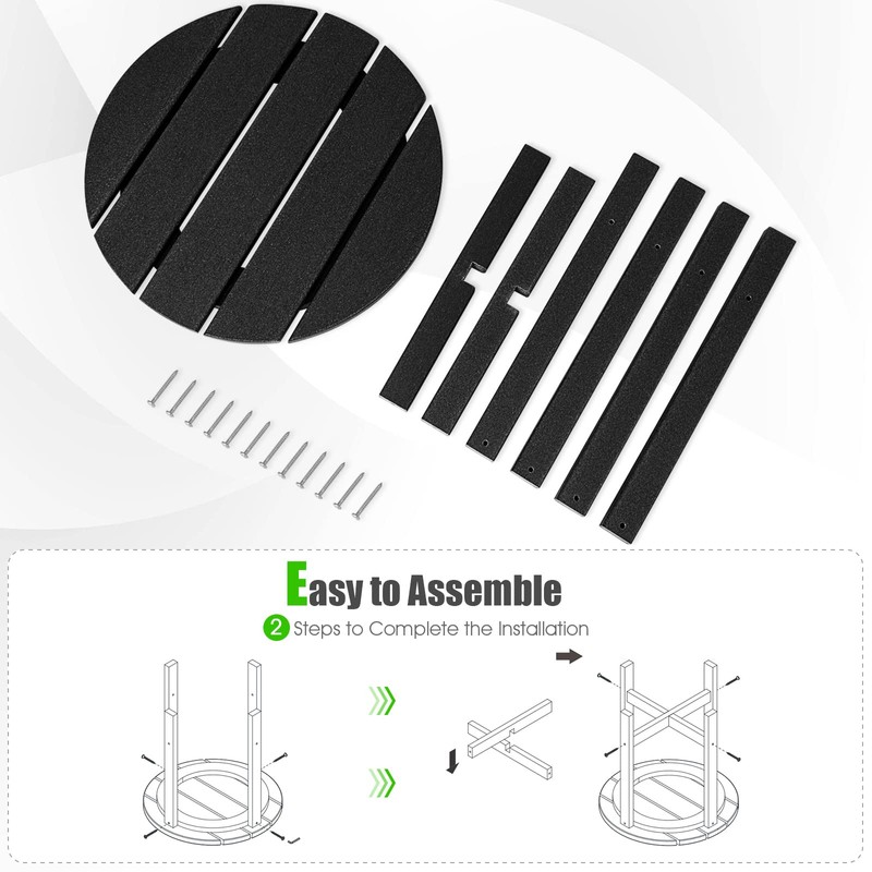 - Easy to Assemble: The installation of this Adirondack side table is quite easy. Only need 2 steps to complete the installation. Measuring 18” x 18” (Dia x H), this end table matches your outdoor Adirondack chairs and indoor sofas (not included) better.