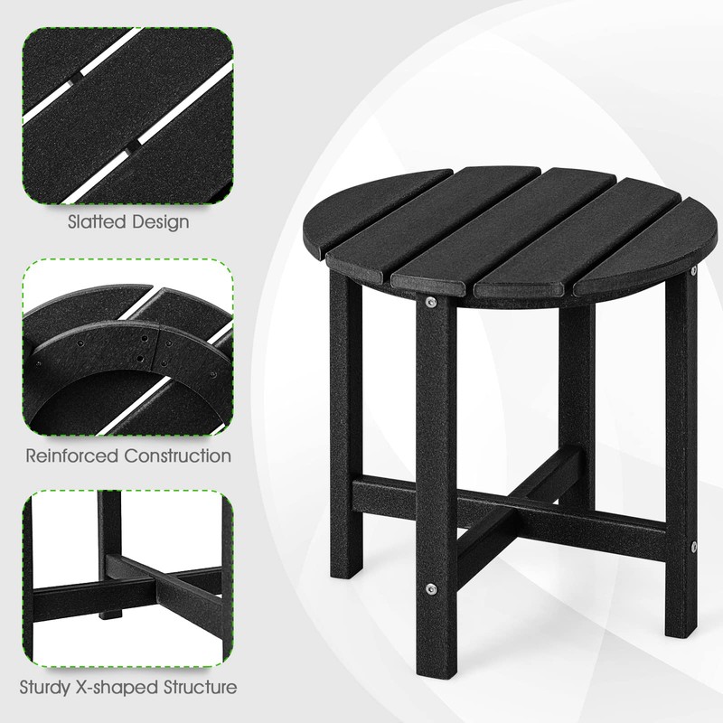Tangkula Round Outdoor Side Table, 18 Inch Weather Resistant HDPE Adirondack Table, Outdoor Indoor Chairside End Tables, Patio Side Table for Lawn Garden Balcony Backyard, Easy Assembly (2, Black)