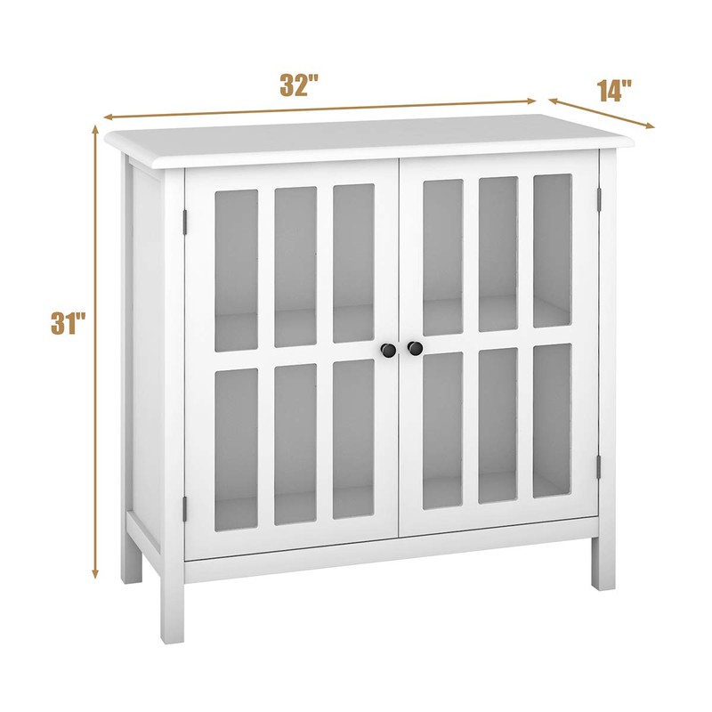 Tangkula Sideboard Buffet Storage Cabinet, Kitchen Storage Cabinet with 2 Glass Doors, Liquor Cabinet for Home Kitchen Dining Room, Cupboard Console Table, Curio Cabinet (White)