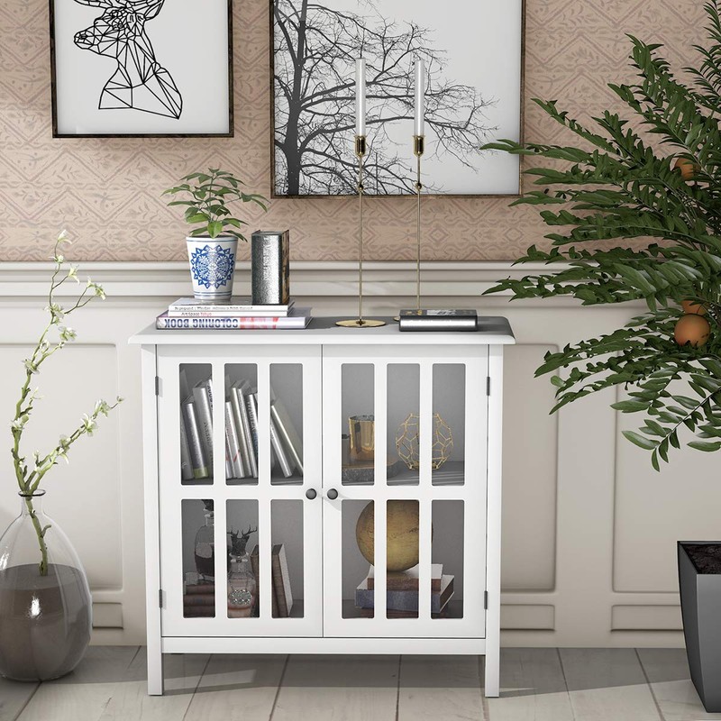 - 【Multiple Values & Premium Performance】With 2-tier shelf and 2 tempered glass doors design, you can surprisingly place your any items in or on it as you like. Transparent glass-paneled doors makes it easy for you to identify your goods With handle for easy opening and closing.