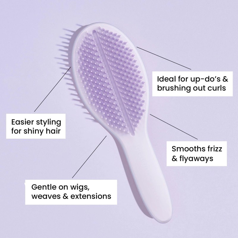 The Ultimate Styler is designed to dry-style and effortlessly finish any look. With a new and improved design, its thin and comfortable handle gives you maximum control when creating updos, adding volume and texture, or giving your hair a smooth and shiny finish. This styling and smoothing brush features unique bottle-shaped teeth that have been developed to dry-style, meaning they're perfect for gently brushing out curls and maintaining and blending hair extensions, clip-ins, and weaves. Perfect for all hair types, healthy hair is just a brush away. Hot tip: Keep this styling and detangling hairbrush for women and men away from heat.