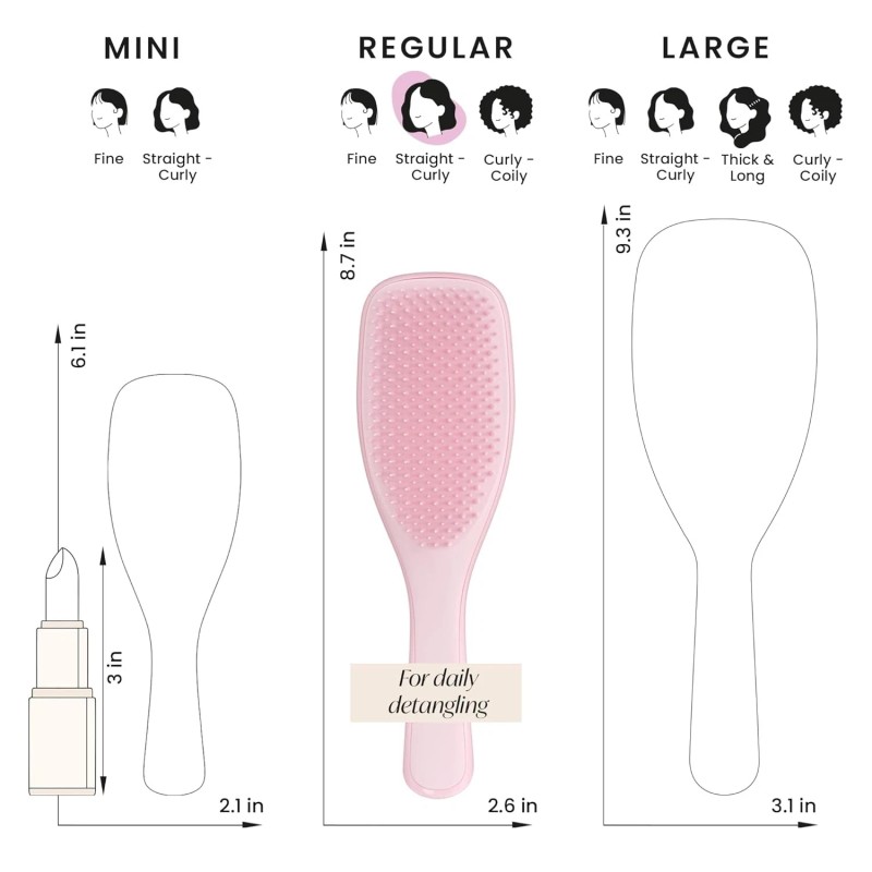 • All Hair Types: This Tangle Teezer hairbrush has regular-flex teeth that gently detangle straight to curly strands
