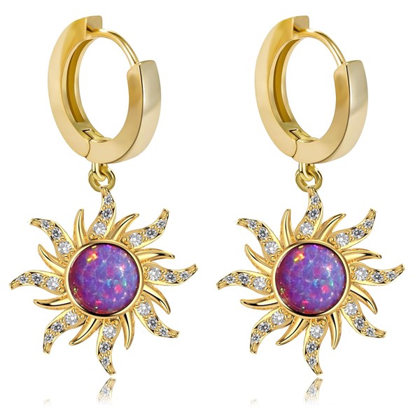 Tangled Rapunzel Spinning Sun Purple Opal Flower Princesses Earrings for Women Sundrop Charm Accessories Cubic Zirconia Plated Gold Princess Movie Gifts Jewelry (Purple opal gold)