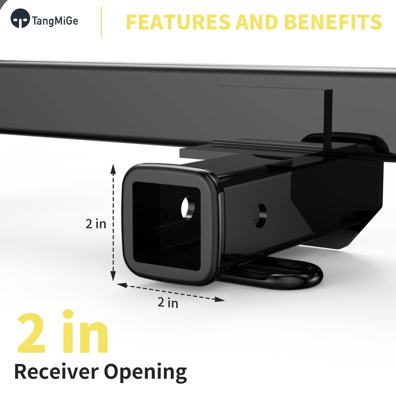 【DEPENDABLE STRENGTH】— The TangMiGe Class 3 Trailer Hitch is rated for 3,500 lbs. gross trailer weight, 525 lbs. tongue weight. (limited to lowest-rated towing component).
