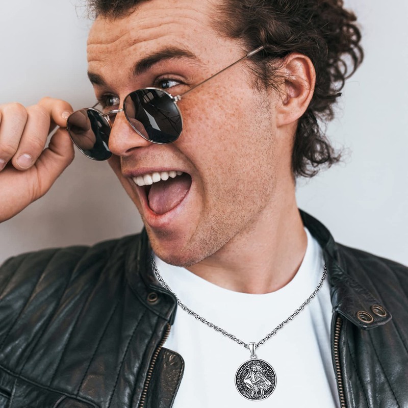 TANGPOET Saint Christopher Necklace 925 Sterling Silver Religious Jewellery Catholic Medal Protection Amulet for Men Women