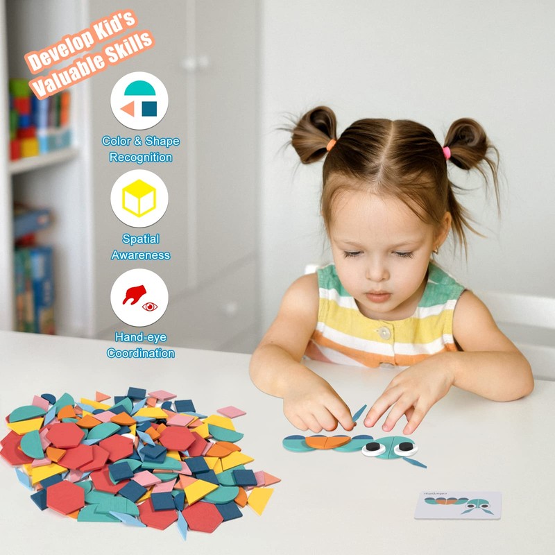 1. Familienaktivitäten: Bunte Musterblöcke bestehen aus Dreiecken, Trapezen, Rauten, Quadraten, Sechsecken und mehr und eignen sich zum Spielen für die Familie und verbessern die Eltern-Kind-Beziehungen.