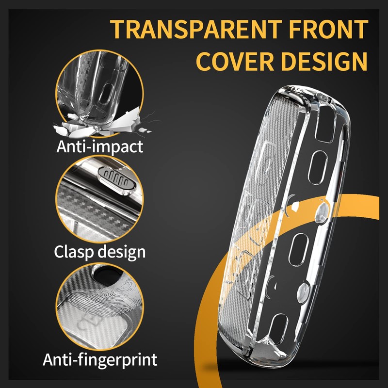 - [Unique design]: Transparent key button design, carbon fiber texture, anti-sweat, anti-slip, give you a different touch. Both side fixation, anti fall more safe.