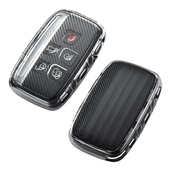TANGSEN Key Fob Case TPU Cover Compatible with Land Rover Range Rover Discovery EVOQUE LR2 LR4 Sport Transparent Carbon Fiber Texture 5 Button Protective Key Shell (Black)