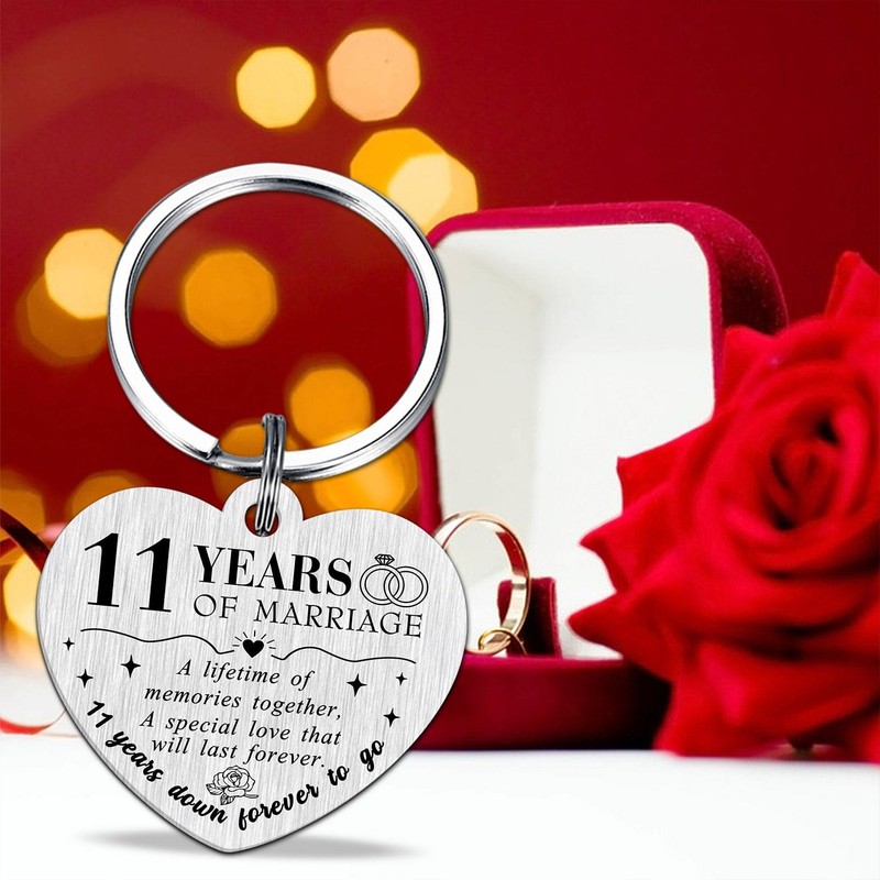 - 11 Years Anniversary Gifts for Him Husband - Romantic 11th wedding anniversary kechain for husband wife men women him her
