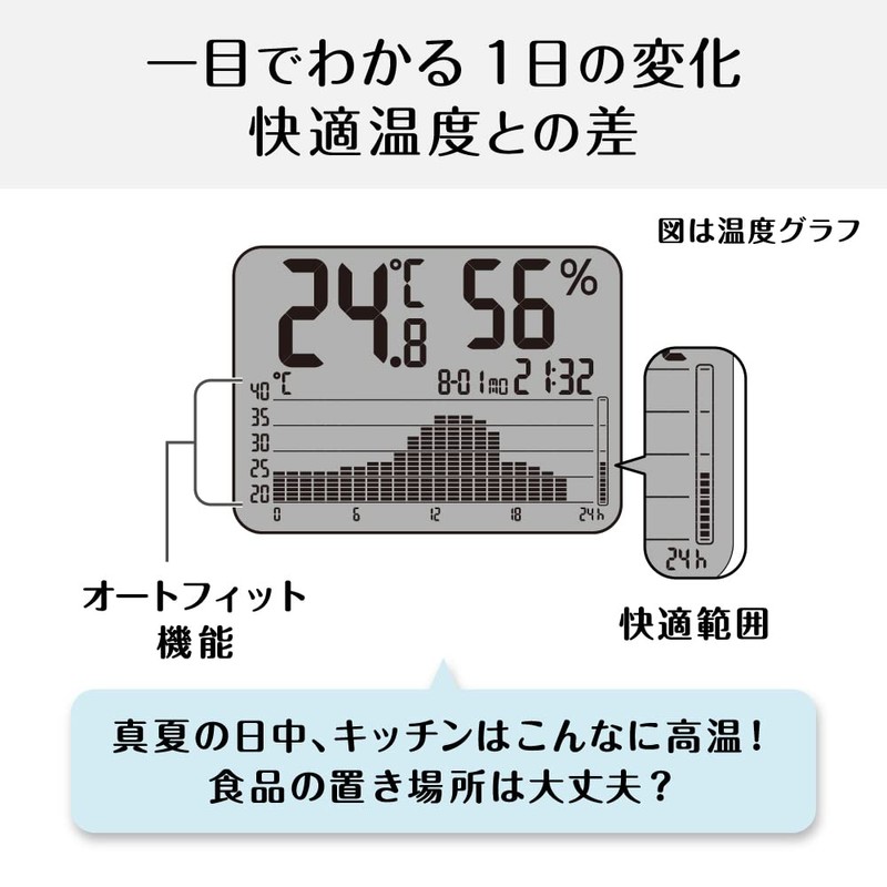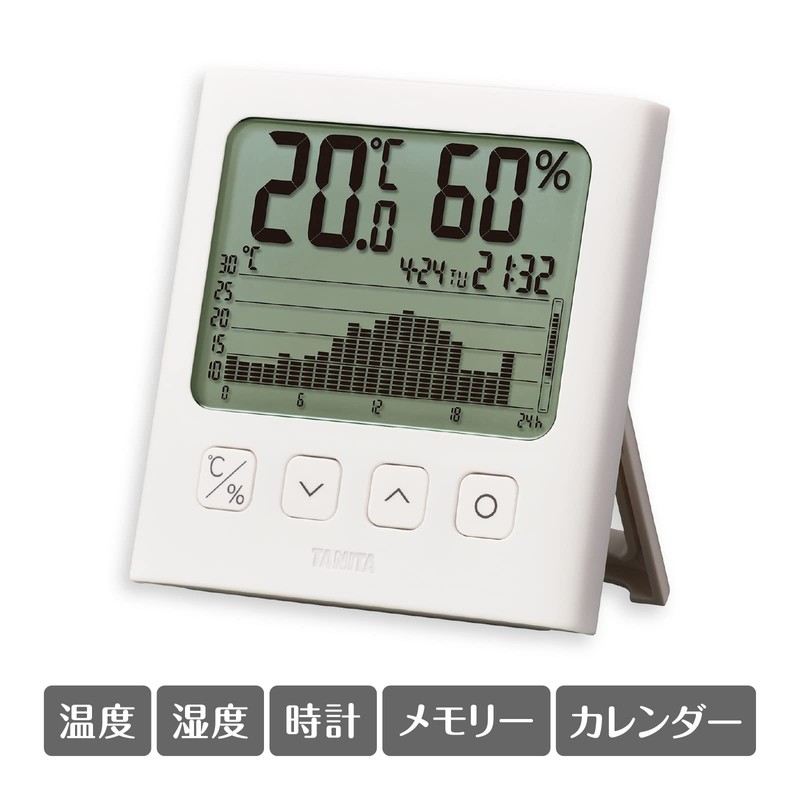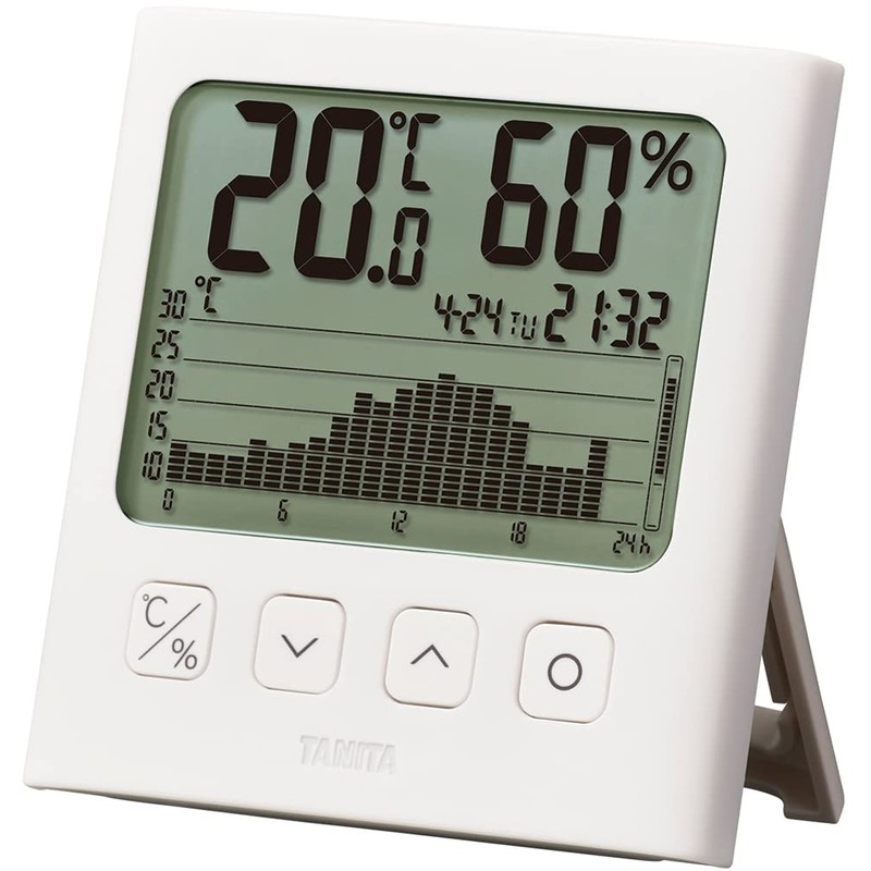 Tanita TT-580 WH Thermometer/Hygrometer, Clock, Calendar, Temperature, Humidity, Digital, Graph, White, Check Temperature and Humidity Changes