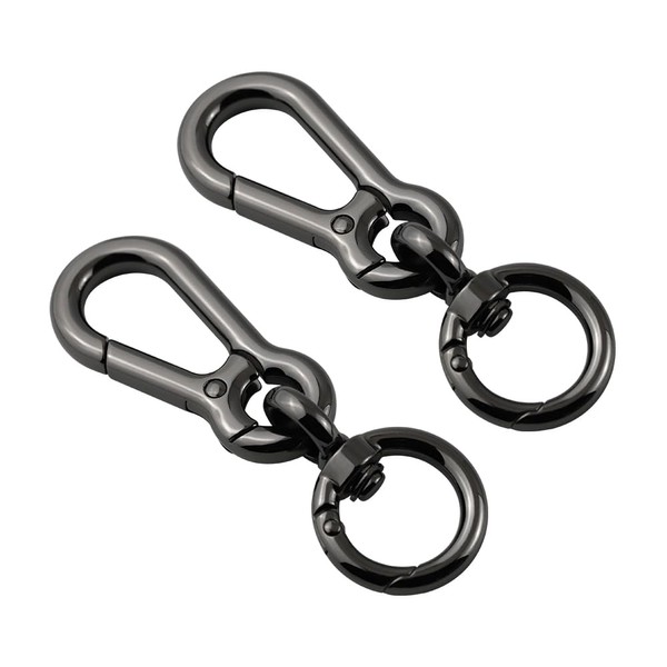 TANJUN Metal Spring Snap Hooks Clip,Car Keys Keychain, 2 Pack Heavy Duty Keychains,Trigger Spring Swivel Buckles for Bags (Black)