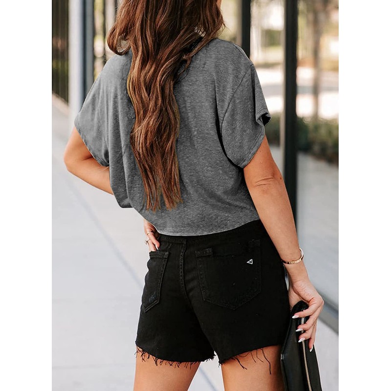 - 🔥【unique design】This tee features a crew neck and loose, cropped fit that sits at the natural waistline, and the drop shoulder design of this basic tee adds a touch of relaxed, effortless style to any outfit.