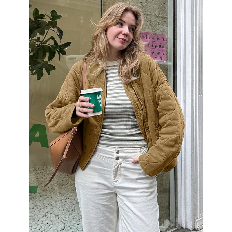 - Feature: This womens quilted lightweight coat features collarless neck, two warm front pockets and the loose fit for staying cozy and leisure wearing experience