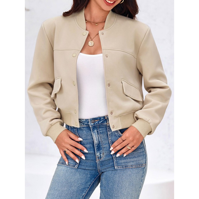 • Features: The cropped bomber jackets feature a button-down closure, long sleeve, basic solid color, stand baseball collar, two decorative pockets, ribbed hemline and cuff, comfy leisure jackets.