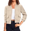 Tankaneo Womens Cropped Bomber Jackets Casual Button Down Long Sleeve Stand C...