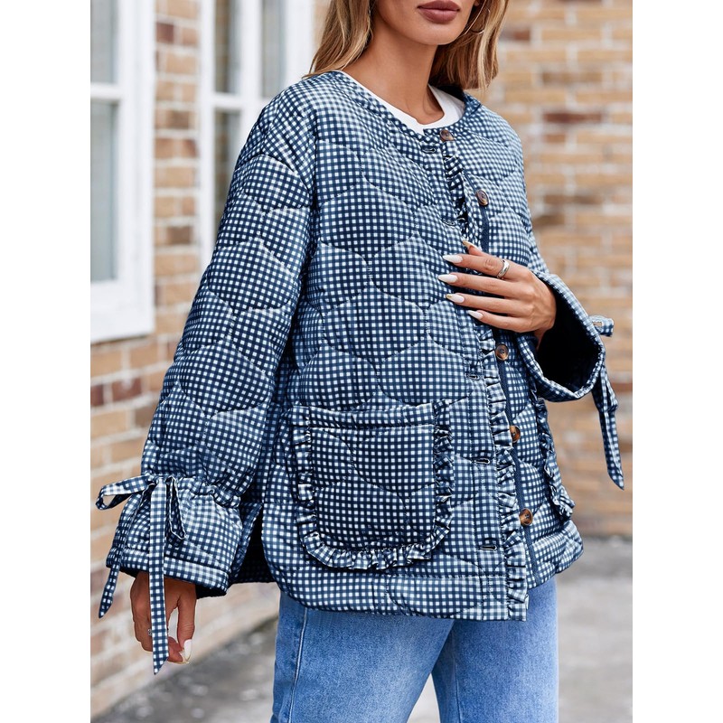 - Unique design: Quilted puffer coats for women are designed with a button down, long sleeve, crew neck, plaid pattern, bow, two side pockets