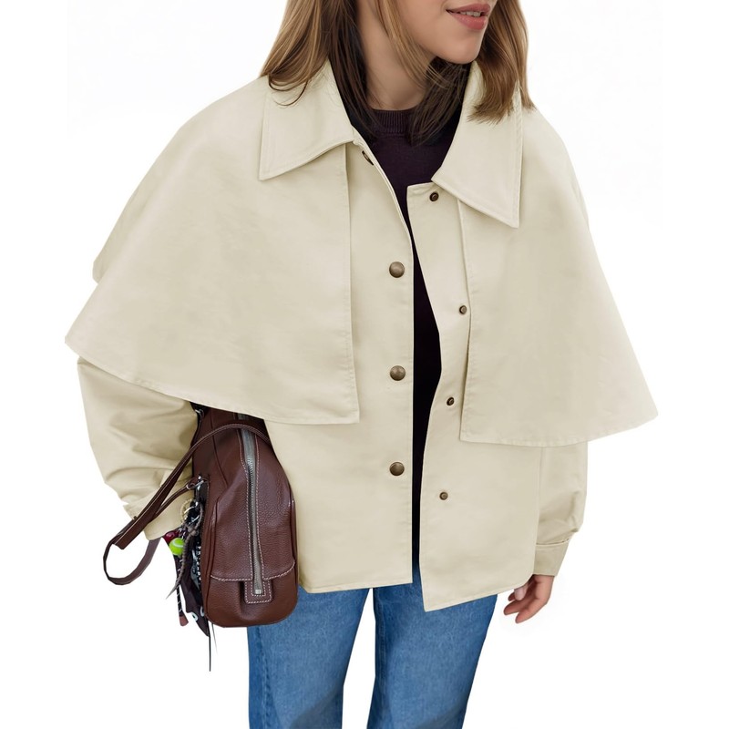 - Stylish Design: The Women's Cropped Trench Coat features a chic cape sleeve design with a classic lapel and single-breasted button closure. The split back hem adds a modern twist while ensuring ease of movement, making this short jacket a standout piece in your fall wardrobe.