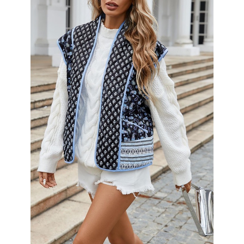 - Features: This puffy vest for women features a open front, 2 pockets, slouchy cap sleeves design, and an oversized style, boho flower printed, quilted design. The pockets are deep enough to carry small items such as a wallet or phone. The oversized puffer vest is not bulky but will make you stand out in a crowd. You will receive compliments when you wear this stylish and cozy puffer jacket.
