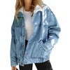 Tankaneo Womens Oversized Denim Jackets Sherpa Collar Button Down Jean Jacket Fall Warm Shacket Coats