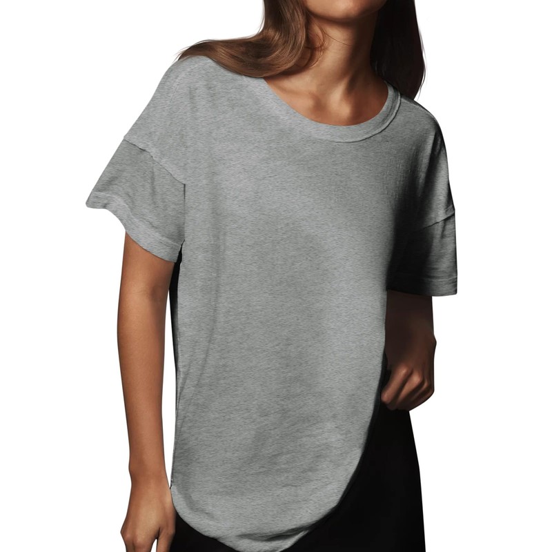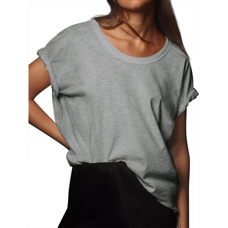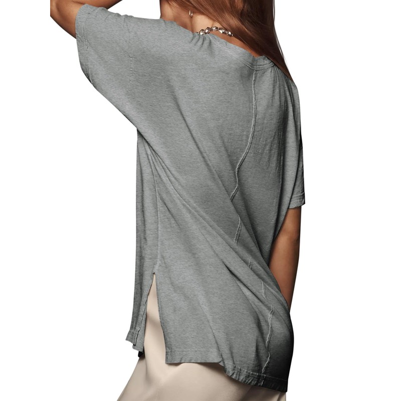 Tankaneo Womens Oversized Short Sleeve T Shirts Summer Casual Crew Neck Tunic Tops Loose Fit Basic Side Split Tees Grey