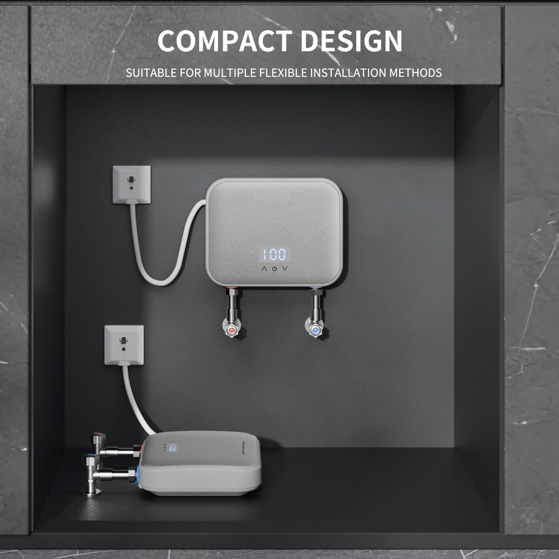 - Easy to Install - The internal integrated cast aluminum structure allows electric water heater to be installed without any restrictions. It can be installed 360 degrees in any narrow space, such as bathrooms, kitchens, and sinks. In addition, water heaters with complete electrical and water flow zones can be installed vertically or upside down according to your needs. Standard 1/2 connector (inflow or outflow), can be directly connected to household conventional hose connectors.