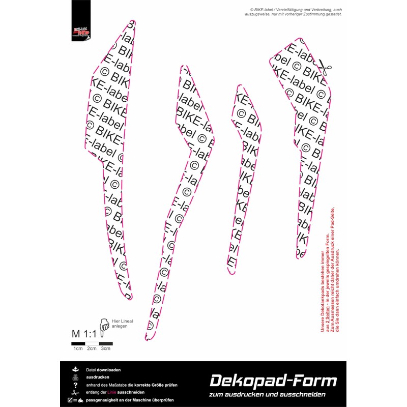- Size: front mask each approx. : 103 x 93 mm / front mudguard each approx. : 50 x 199 mm / tank cover each approx. 79 x 141 mm / seat trim each approx. 196 x 68 mm. Material thickness: approx. 1 - 2 mm (based on the arrangement as shown in the picture)