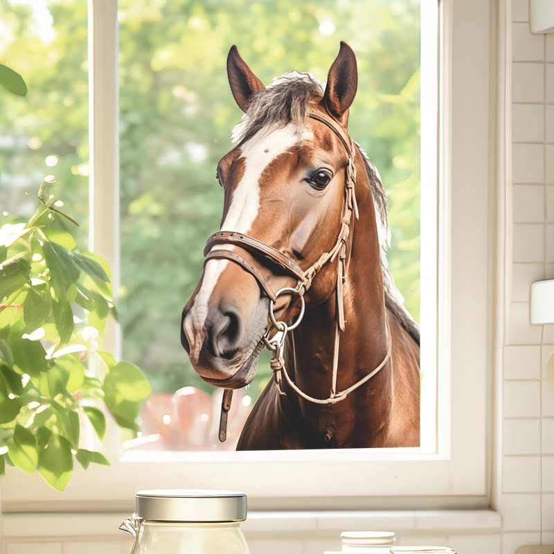 - Easy to use: it only takes a few seconds to apply static cling to the horse. Clean the window and spray water on the surface where the film is to be applied, then quickly peel off the film and stick it to the window. Finally, squeeze out the water from below with the included card.