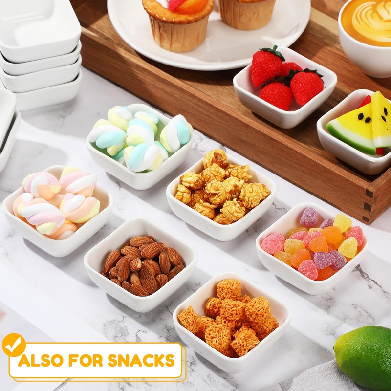 Tanlade 20 Pcs 3 oz Dipping Sauce Bowls Soy Sauce Dishes White Ceramic Dip Bowls Set Porcelain Dip Mini Bowls Square Dipping Sauce Cup for Tomato Sauce BBQ Ketchup Sushi and Other Party Supply Dinner