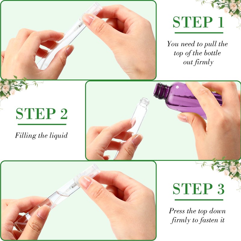 - Leakproof Design: the spiral thread on the bottle mouth ensures a tight seal, making these perfume sample containers leakproof and suitable for carrying in your bags without worrying about spills; You can safely carry your favorite fragrances or essential oils to work, gym, or travel without mess