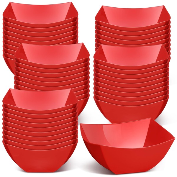 - What You Will Get: you will get 50 pieces of square plastic disposable bowls for parties altogether, available in red, 8 ounces, suitable foods include generally snacks, salads, sauces etc; Suitable for parties, family dinners, holidays and so on