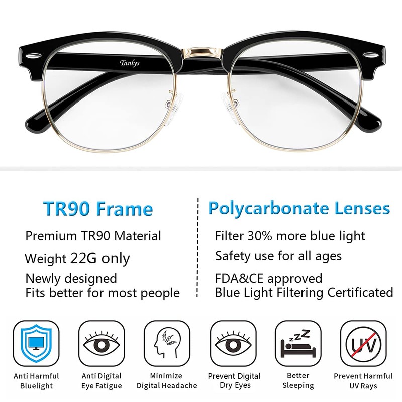 Tanlys Paquete de 2 lentes de bloqueo de luz azul para fatiga ocular de computadora [ojo seco y ojo agrio]