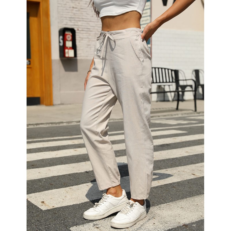 - Features: elastic waist cotton linen pants for women, tapered leg, side convenient pockets, waist drawstring, ankle length