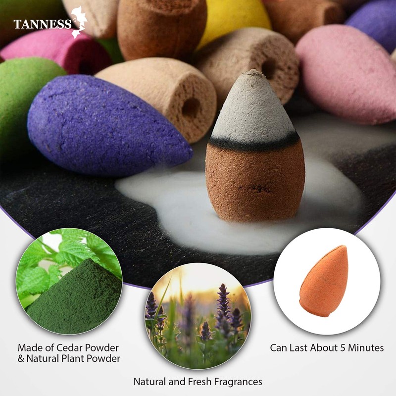 TANNESS 100 PCS Incense Cones, Backflow Incense Cones for Incense Holder & Incense Burner | 10 Mixed Natural Scents for Incense Waterfall Burner | Incense Cone Burner Cones for Relaxation & Meditation