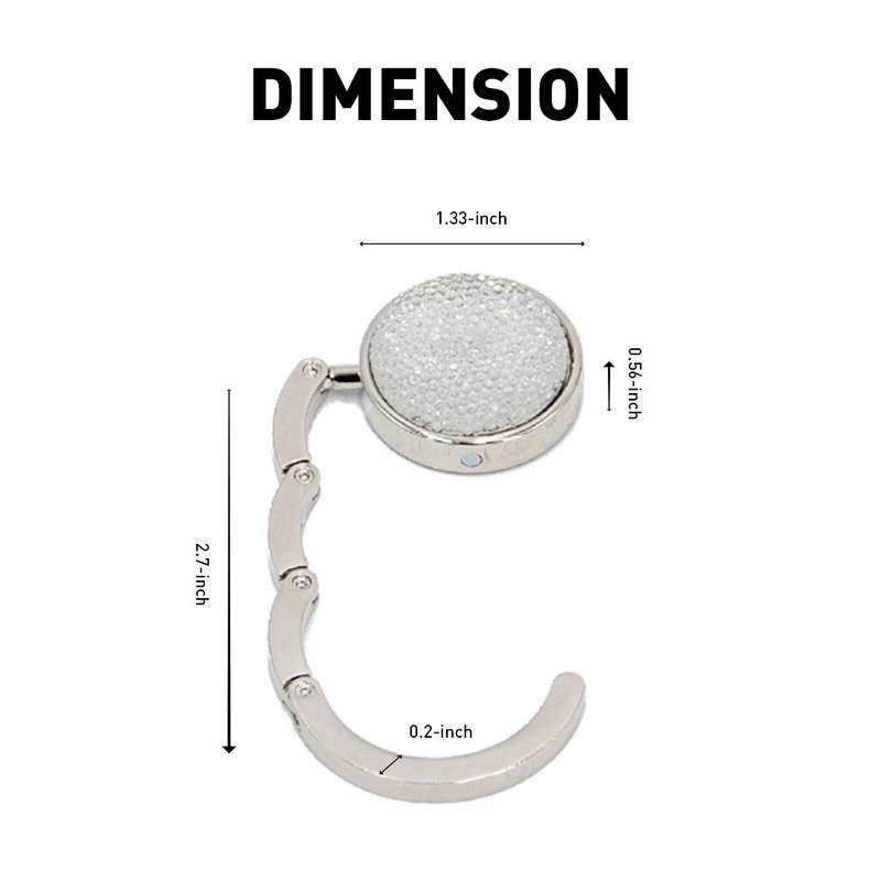 - Material: Our purse hooks are made of zinc alloy and color rhinestone series, the disc of handbag hanger is made of anti-slip rubber which can prevent it from slipping on smooth or hard surfaces.