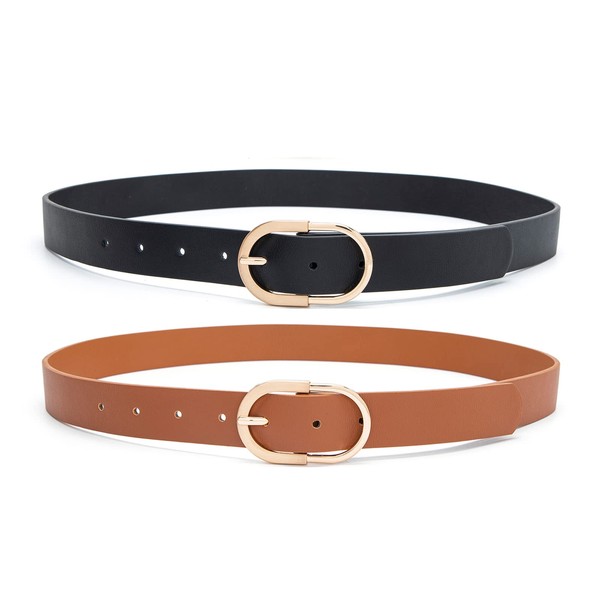 Tanpie 2 Pack Womens Leather Waist Belts for Jeans Pants with Gold Buckle Black&Brown Large