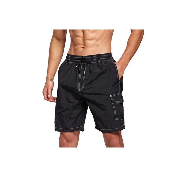 Tansozer Men's swimming shorts, waterproof swimming trunks, quick-drying, black, xl