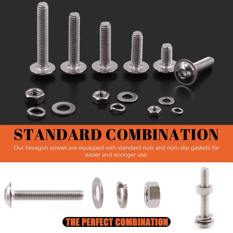 • 🔨[Nice Additions] Our hex nuts and washers can protect the screws and parts by expanding the contact area and reducing the pressure. Our button head screws are designed with compact and full thread, not easy to be out of shape and slid when installing.