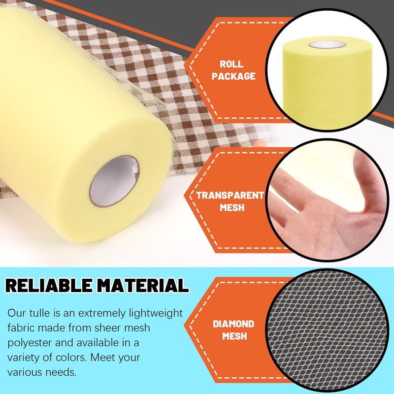 - What You Will Get: You’ll receive 1 roll light yellow tulle fabric, 150mm/6 inch in width and 100 yards/300 feet in length, which can meet your various needs of daily use.